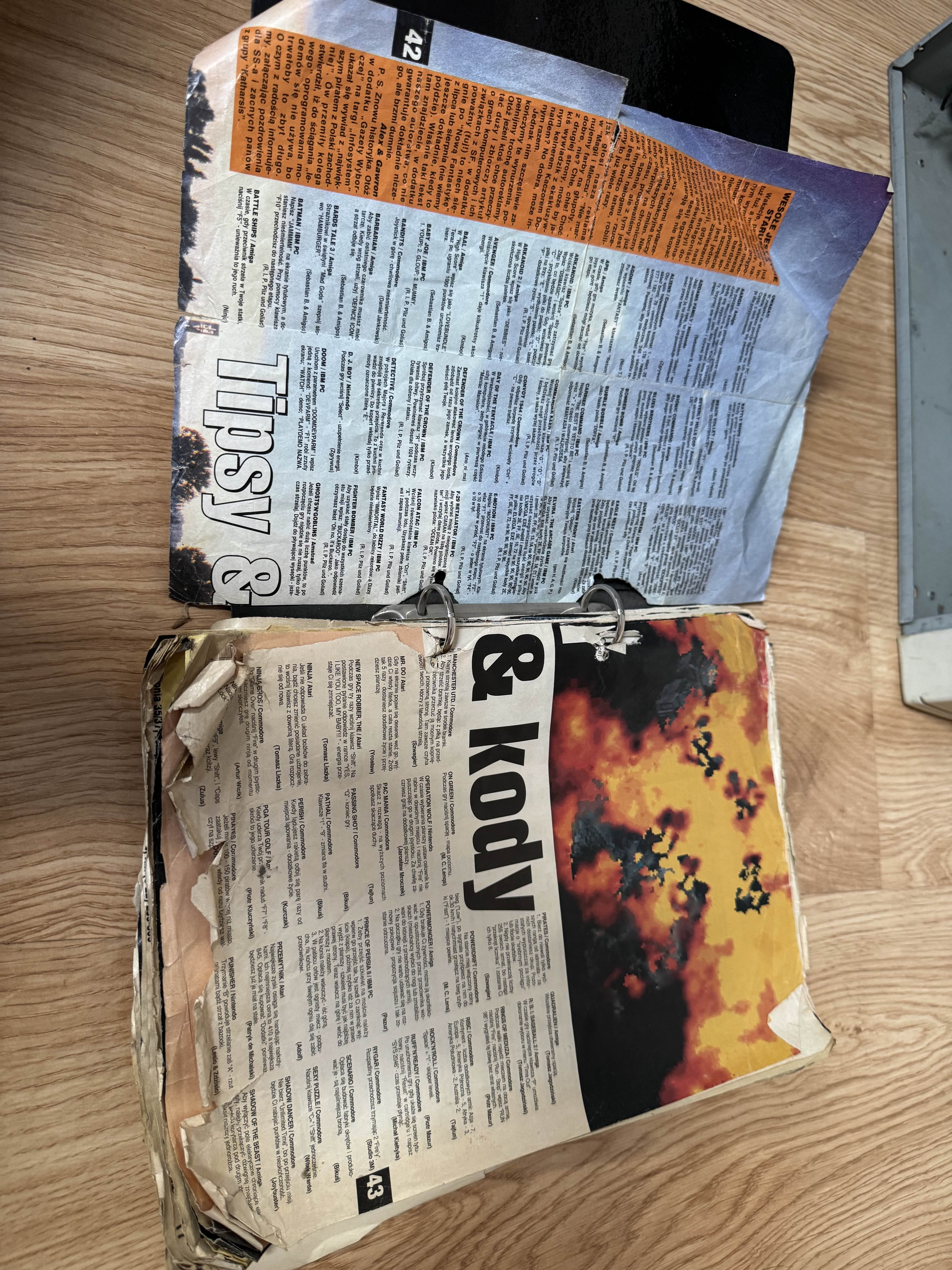 Time for other goodies that were hidden. This is a binder full of pages torn out of old magazines containing various tips, tricks and cheat codes for games.