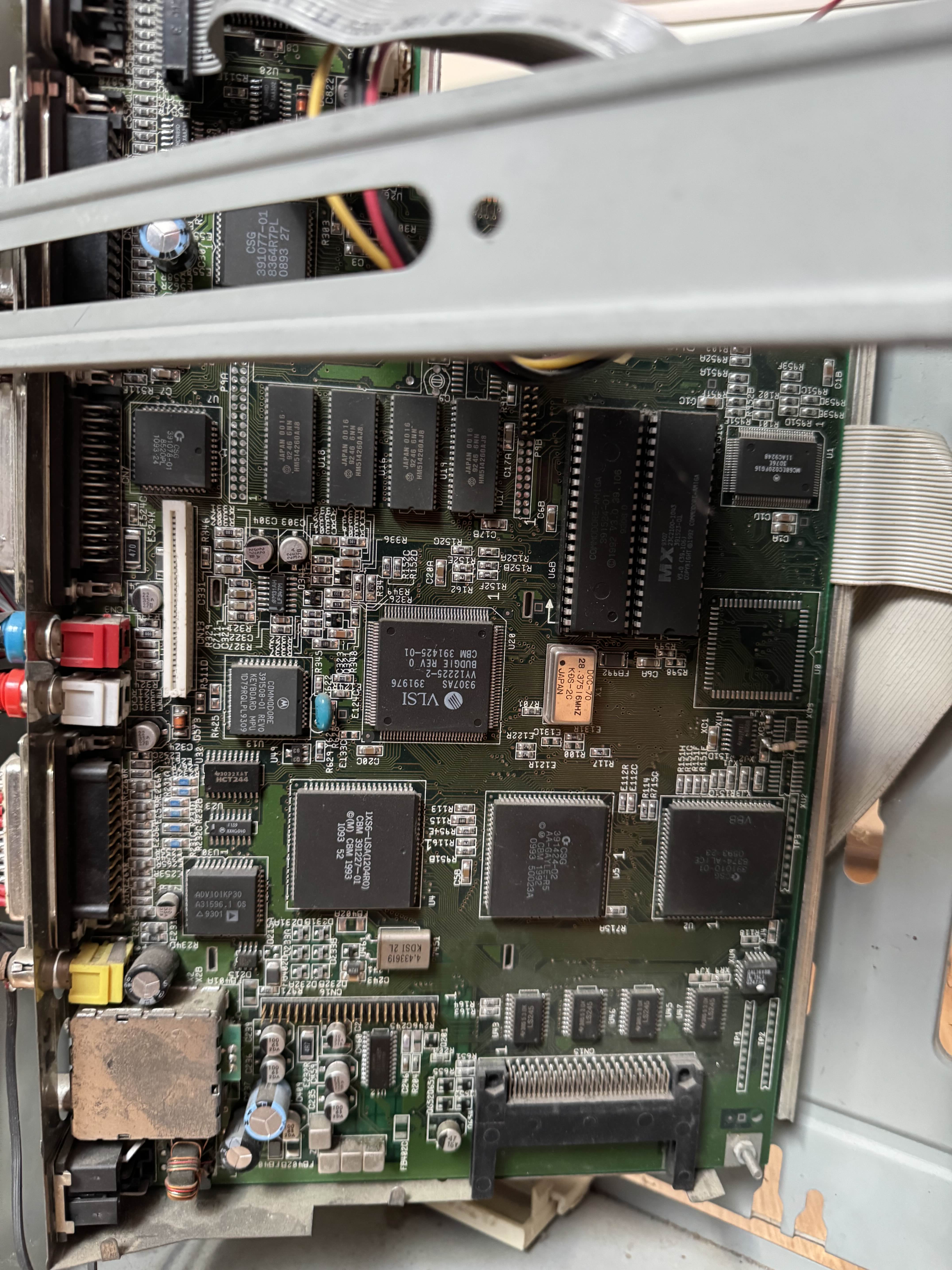 Partial look at the A1200 motherboard - it seems to be in fine condition. It will require a recap either way.